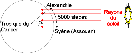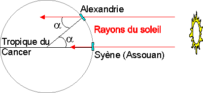 trouve au centre de la Terre intercepte l'arc joignant Syène à Alexandrie. Ces