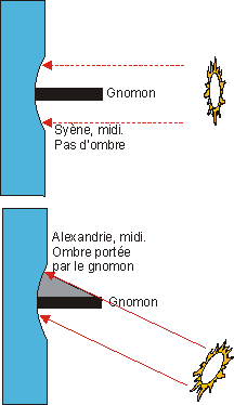 le cadran solaire de Syène se trouve à la verticale du Soleil, si nous imaginons
