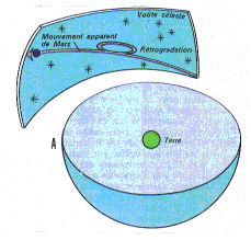 Auteur d'une oeuvre prolifique et féconde, qui embrasse les divers domaines de la science mathématique, Claude Ptolémée est surtout connu pour l'ouvrage en treize livres qui expose son système du monde : la Grande Syntaxe ou, d'après l'arabe, l'Almageste. Avec lui s'imposent des conceptions géocentriques, qui, tout en étant dès l'Antiquité en opposition avec les premières théories héliocentriques, seront le fondement de toute l'astronomie occidentale jusqu'à la révolution copernicienne, au XVIe siècle. Outre d'abondants calculs astronomiques et études trigonométriques, Ptolémée fait oeuvre d'ingénieur, mettant au point divers instruments d'observation, dont un astrolabe très perfectionné. En tant que géographe, il a publié un ouvrage en huit livres, connu sous le nom de Géographie de Ptolémée, et qui définit une méthode pour réaliser une cartographie de la Terre. (D'après l'encyclopédie Atlas : http://www.webencyclo.com) Comme ce système ne rendait qu'imparfaitement compte du mouvement réel des planètes, les savants le complétèrent au cours des siècles en imaginant jusqu'à une quarantaine d'épicycles par astre. |